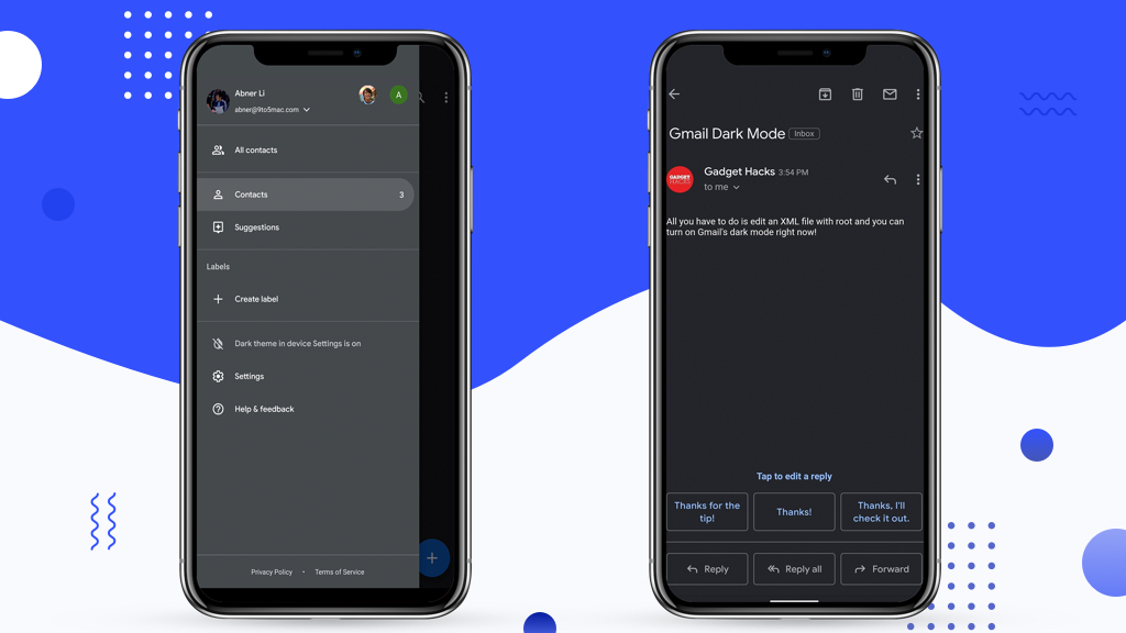 While many of Google’s Android apps will adopt a dark theme when you turn it on in overall settings, you need to flip it on separately in Gmail.