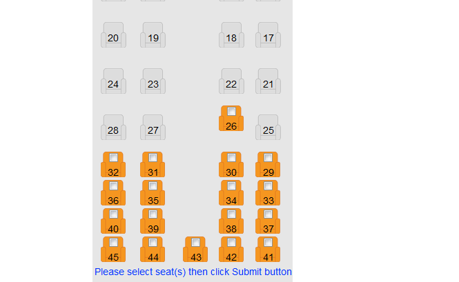 - Choose the preferred seat and press ‘submit’. The available colours will be brightly coloured.
