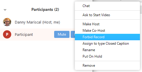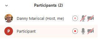 - When a participant is recording, the participant menu will display a recording icon next to the participant’s name.