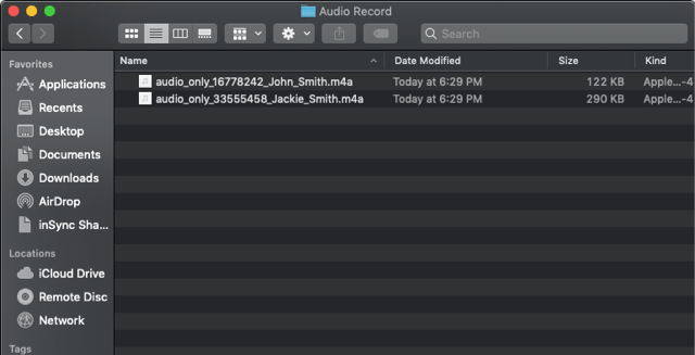 - Once in the Audio Record folder, each participant’s audio track will be listed as its own file in with the file name ending in the participant’s name.