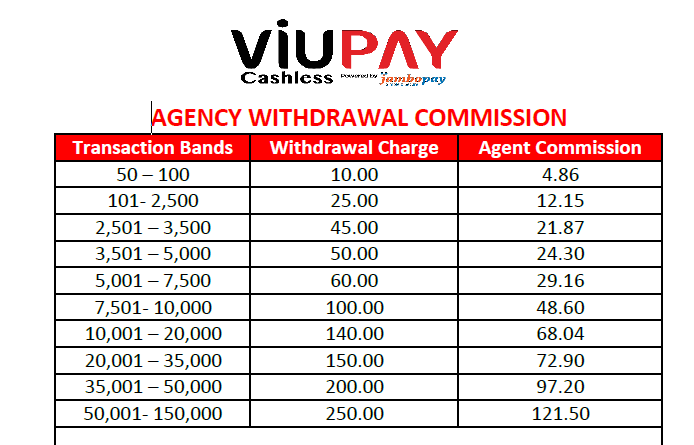 - Converting commission earned to MPESA will attract the same as above in addition to a 5% withholding tax for the commission earned.
